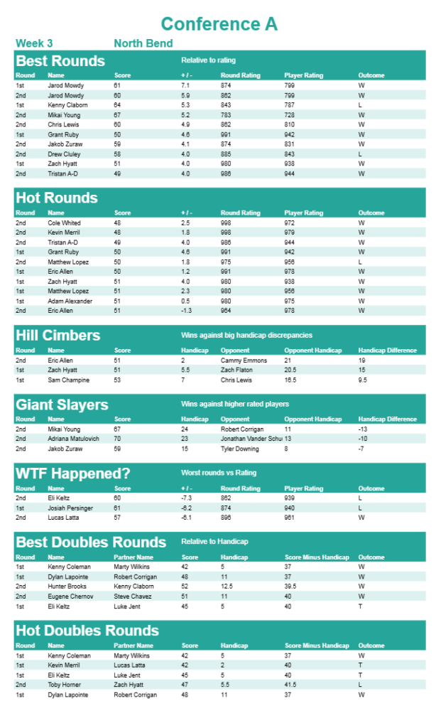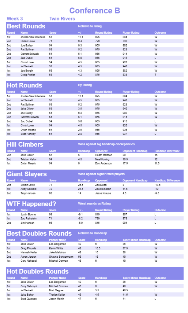 • Weekly Handicap Rating
