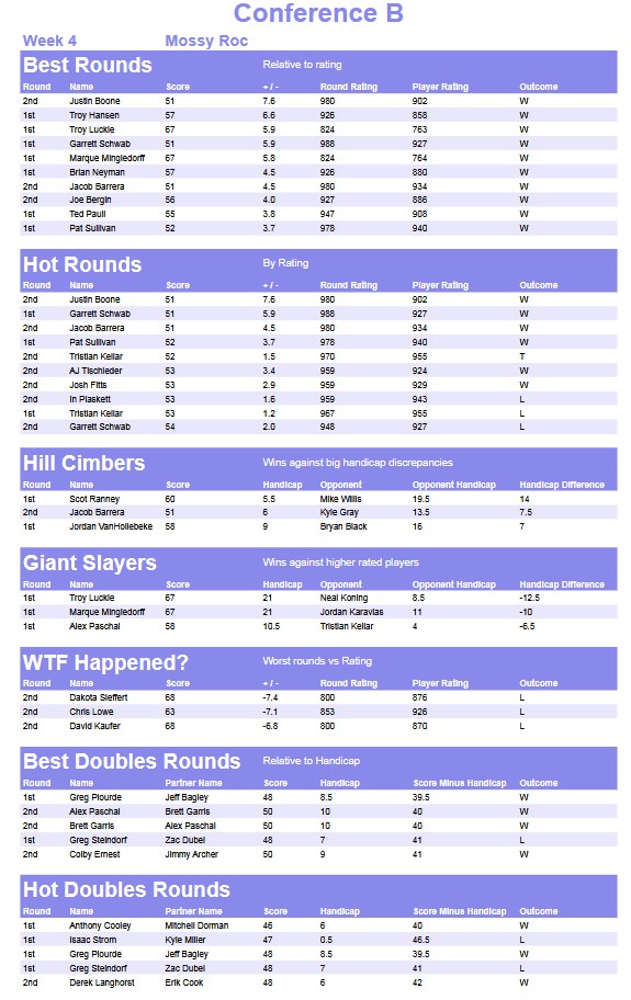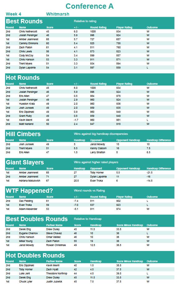 Weekly Handicap Rating