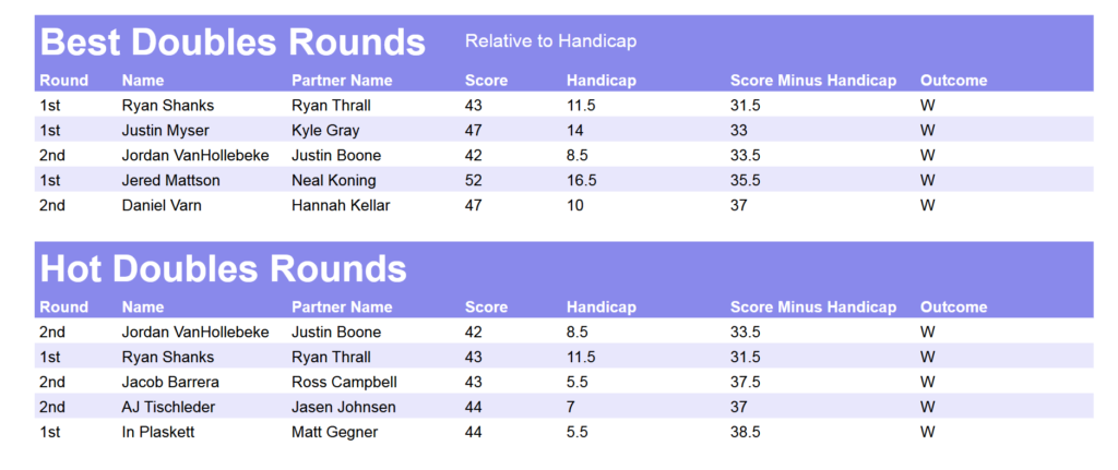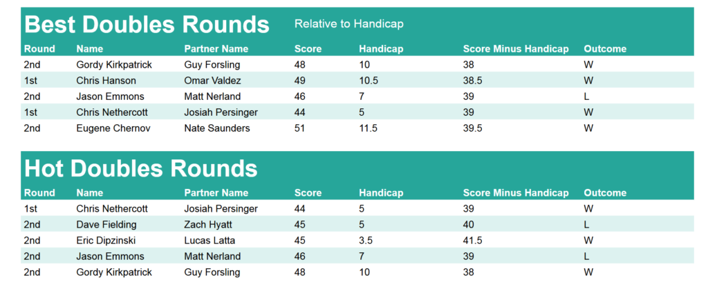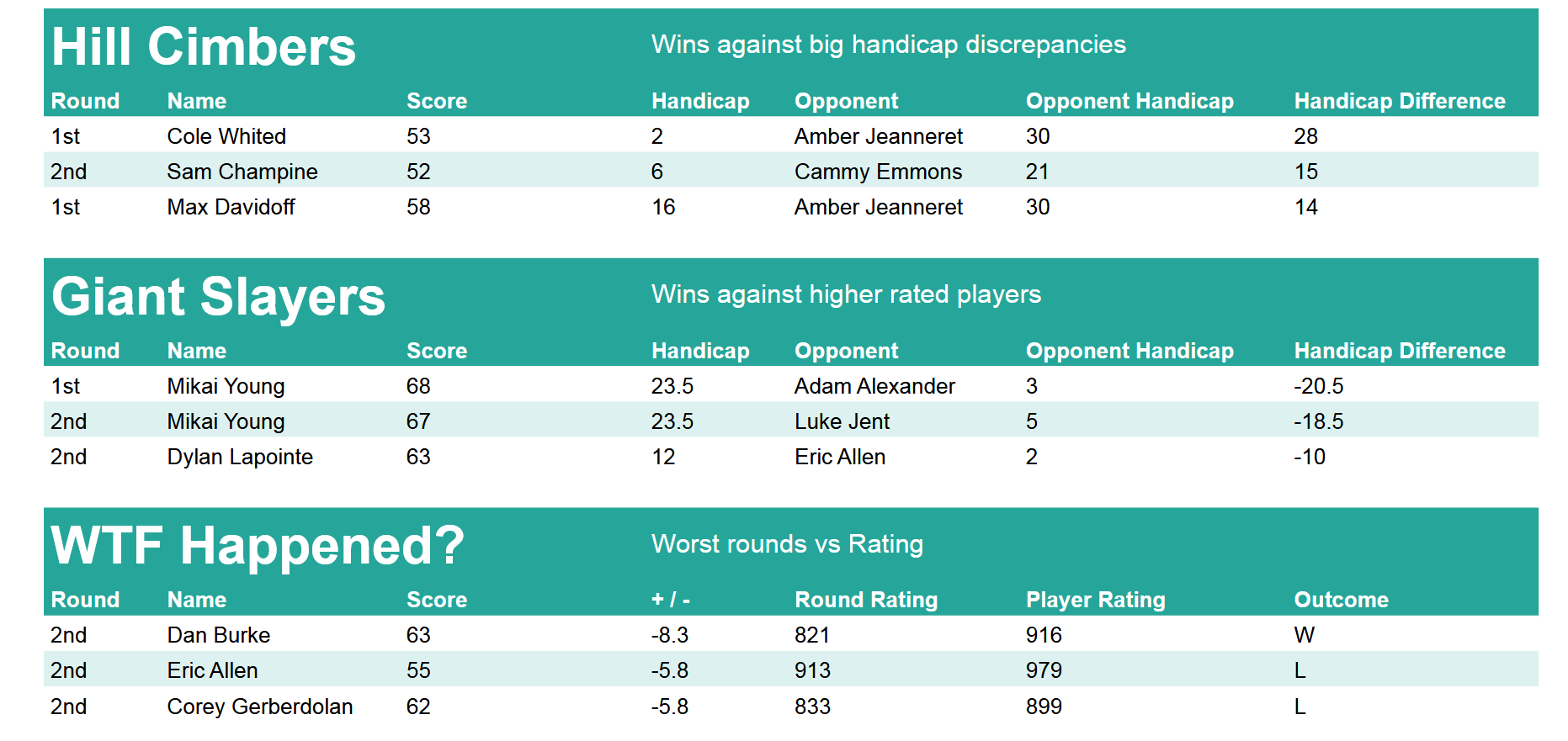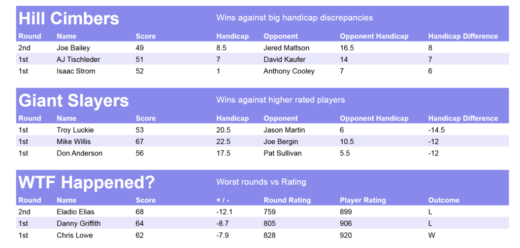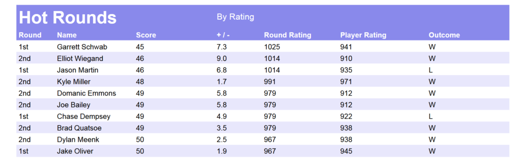 • Weekly Handicap Rating