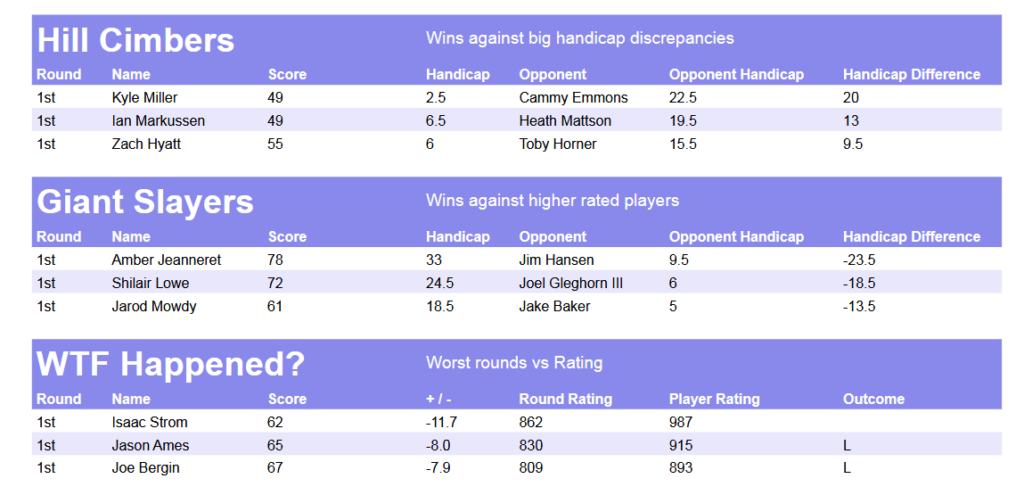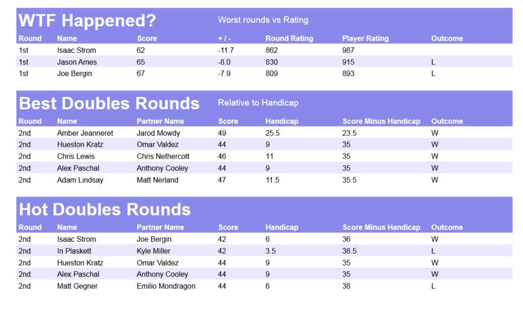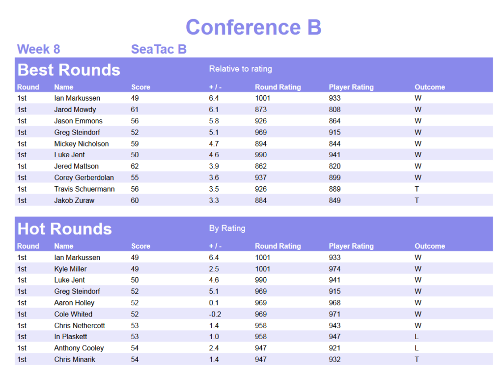 Weekly Handicap Rating
